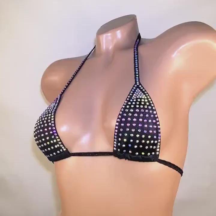 Slim top micro thong bikini rhinestone bra erotic G top crystal glitzer top bedazzled bra ladies underwear cupless bra holographic bikini